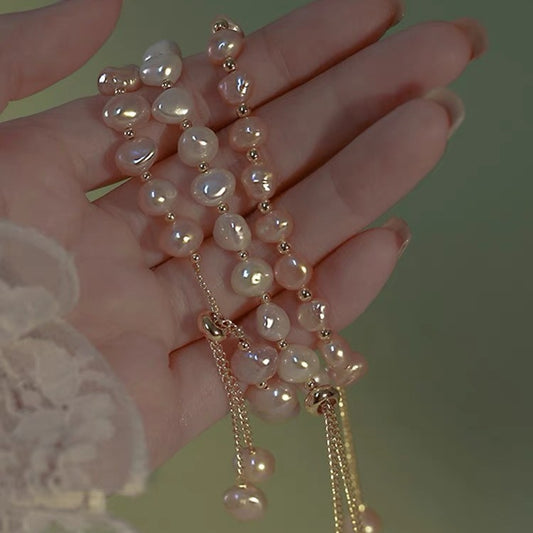 Sale price £3.49Shipping IncludedChic Adjustable Faux Pearl Bracelet for Women - Trendy Irregular Design for Any Occasion