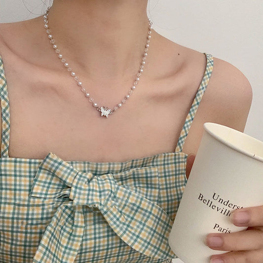 Sale price £3.99Shipping IncludedElegant Butterfly Choker Necklace for Women - Summer Crystal Pearl Design - Unique Minimalist Style