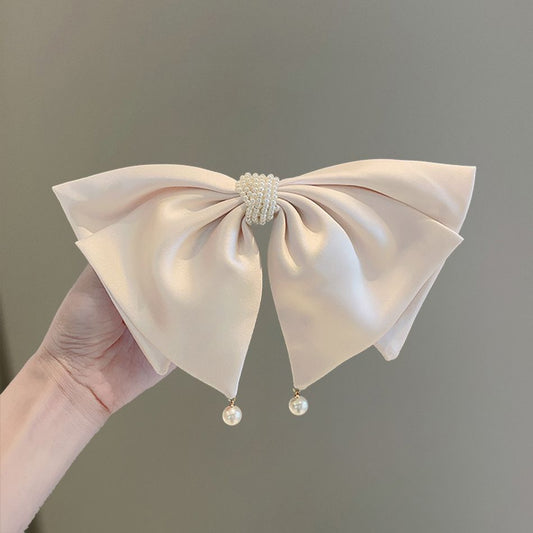 Sale price From £4.49Shipping IncludedElegant Satin Bow Pearl Spring Hair Clip - Large Black Ponytail Accessory for Stylish Women