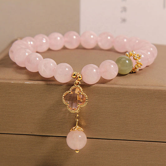 Sale price £5.49Shipping IncludedNatural Rose Quartz Bracelet for Women - Exquisite Clover Pendant, Perfect Gift for Friends
