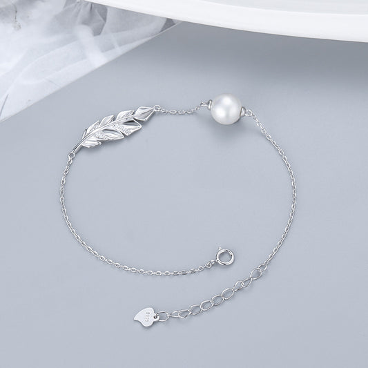 Sale price From £7.49Shipping IncludedS925 Silver Leaf Bracelet with Pearls - Elegant Women's Jewelry for Any Occasion