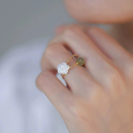 Sale price £3.49Shipping IncludedStunning Rose Flower Design Adjustable Ring for Women – Unique Mother of Pearl Vintage Style