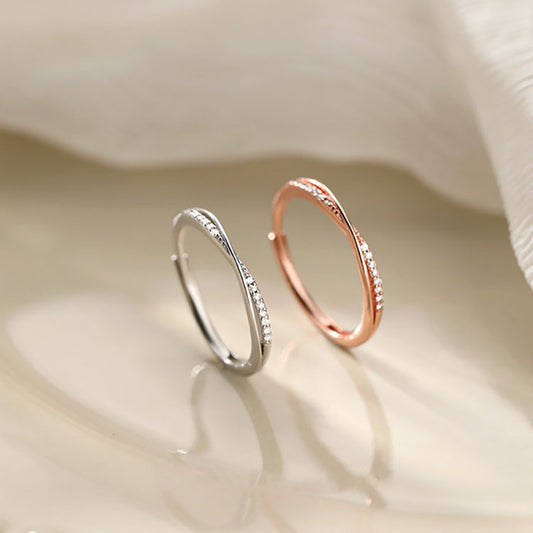 Sale price £3.49Shipping IncludedStylish Geometric Open Ring with Cross Lines and Rhinestones – Adjustable Fashion Accessory for Women