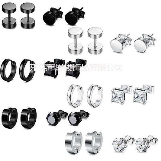 Sale price From £5.99Shipping IncludedStylish Geometric Zirconia Stud Earrings Set - Stainless Steel Ear Accessories for All Occasions