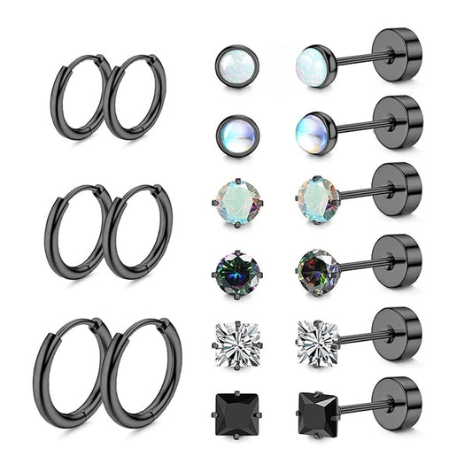 Stylish Geometric Zirconia Stud Earrings Set - Stainless Steel Ear Accessories for All Occasions