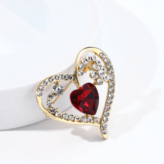 Sale price £3.99Shipping IncludedStylish Heart-Shaped Crystal Brooch - Elegant Red Rhinestone Alloy Pin for Fashion Forward Women
