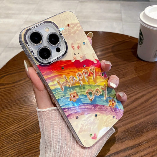 Sale price £5.49Shipping IncludedColorful Rainbow Bunny iPhone Case with Rhinestone Lens Protector - Compatible with iPhone 15, 14, 13, 12, and 11