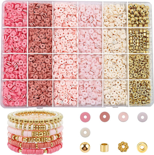 Clay Bead Jewelry Kit for Kids, 5-Color Assorted DIY Bracelet and Necklace Making Set