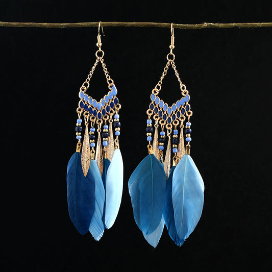 Sale price From £3.49Shipping IncludedBohemian Feather Tassel Earrings for Women - Unique Vintage Style in Blue - Long Yunnan Travel Accessories