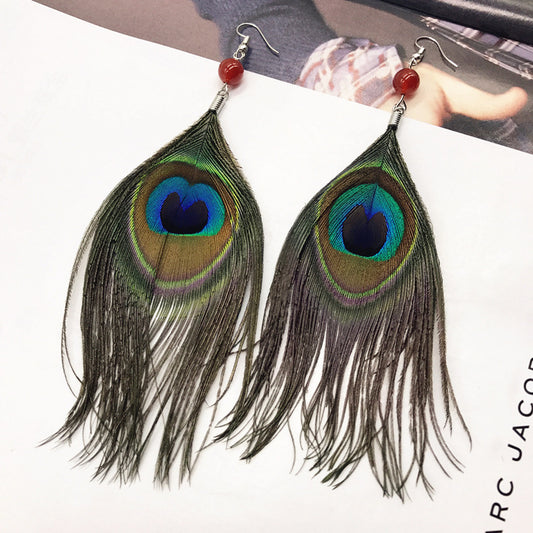 Sale price From £4.49Shipping IncludedBohemian Peacock Feather Tassel Earrings - Vintage Chic Long Drop Earrings for Women