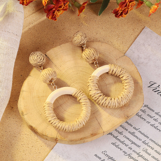 Sale price From £3.49Shipping IncludedBohemian Vintage Woven Rattan Earrings for Women - Summer Beach Chic Long Earrings