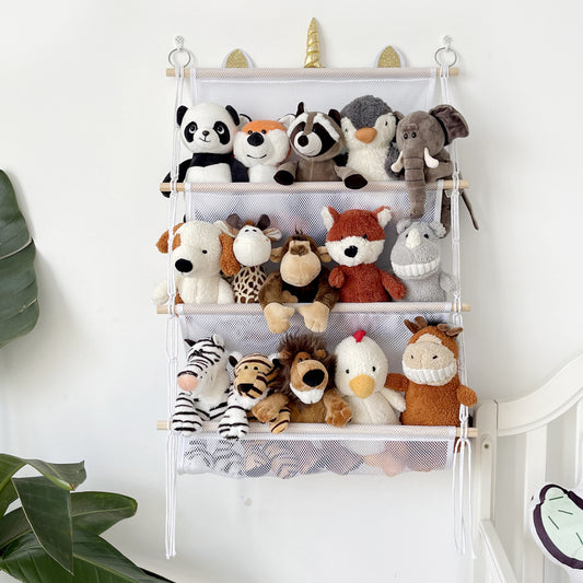 Sale price £23.49Shipping IncludedStylish 3-Tier Wooden Storage Rack for Kids Room - Bohemian Toy Organizer with Cozy Net Baskets
