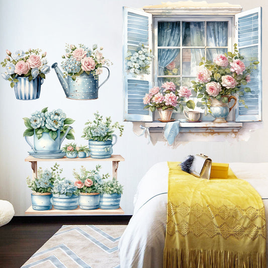 Sale price £5.49Shipping IncludedBlue Floral Wall Decal for Bedroom - Create a Cozy Window Effect Background Easily