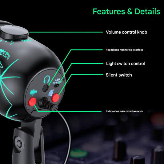 Sale price £22.99Shipping IncludedUSB Live Streaming Microphone with Colorful Lights for Singing, Recording & Gaming