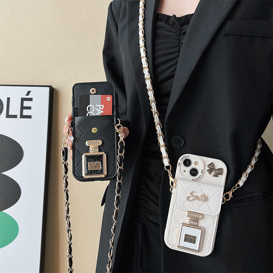 Sale price £5.99Shipping IncludedChic Crossbody Wallet Case for iPhone 14/13/12 - Stylish TPU Phone Bag with Mirror & Chain - Protective & Versatile Design