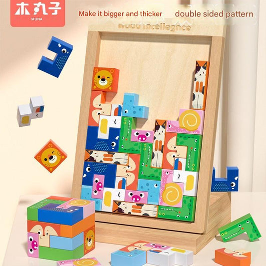Sale price £14.99Shipping IncludedChildren's Wooden Tetris Blocks 3D Puzzle Animal Jigsaw Educational Stacking Toy