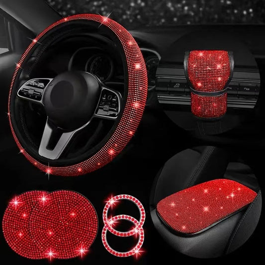Sale price £19.99Shipping IncludedLuxury Car Steering Wheel Cover Set with Bling Rhinestones, Universal Fit, 7-Piece Set Including Cup Pad and Armrest Cushion
