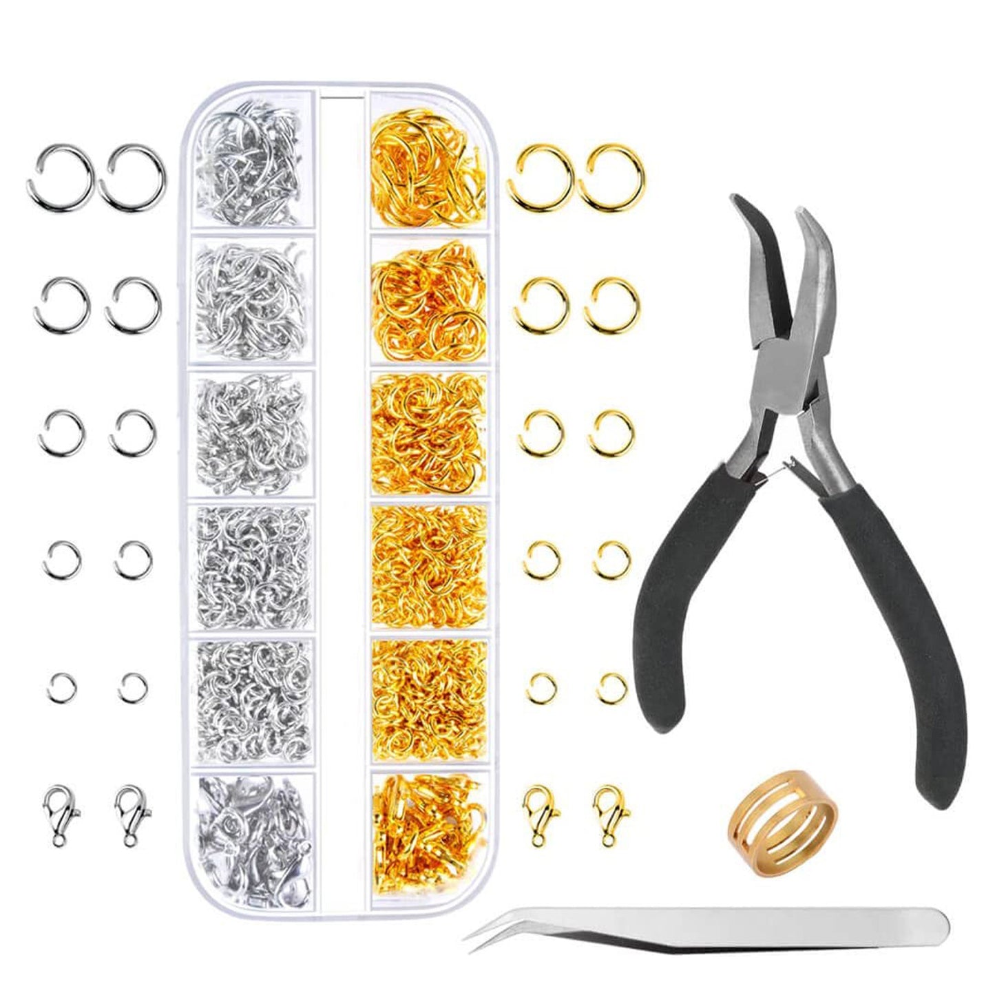 12-Piece DIY Jewelry Making Kit with Open and Closed Rings, Lobster Clasps, and Hand Tools