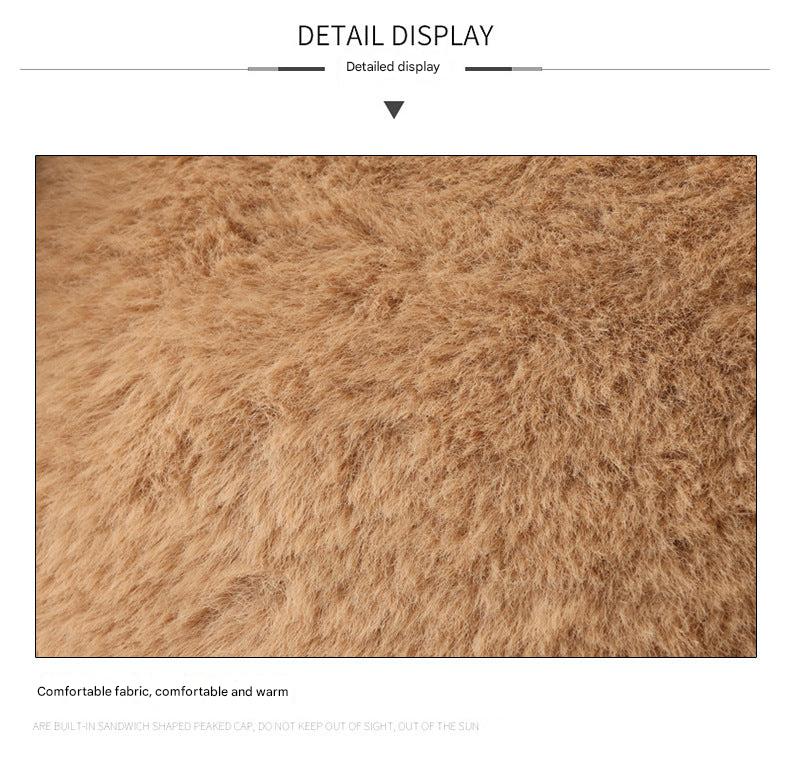 The Adorable Kids Cartoon Bear Hat with Scarf is a whimsical and practical winter accessory crafted to keep your child warm and stylish. Made from soft rabbit fur, this hat features a cute bear design that appeals to children's sense of fun. It is perfect for ages 2 to 6, ensuring a snug fit for most kids. Whether they're playing outside in the snow or simply going for a stroll, this hat and scarf set provides essential warmth and protection from the cold. With multiple color options like cream, khaki, and pink, you can choose the perfect match for your child's outerwear. Make winter wear enjoyable with this lovable hat, which combines functionality with delightful aesthetics.