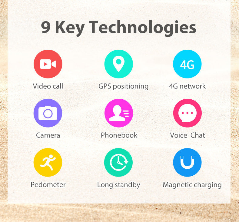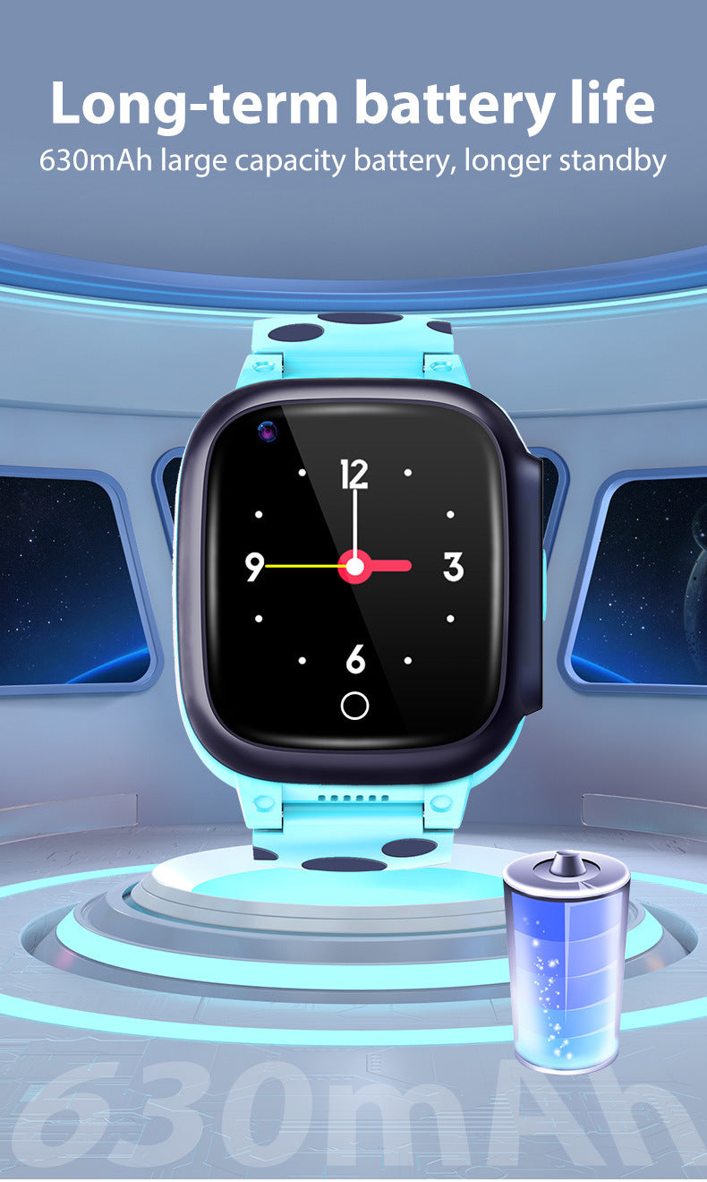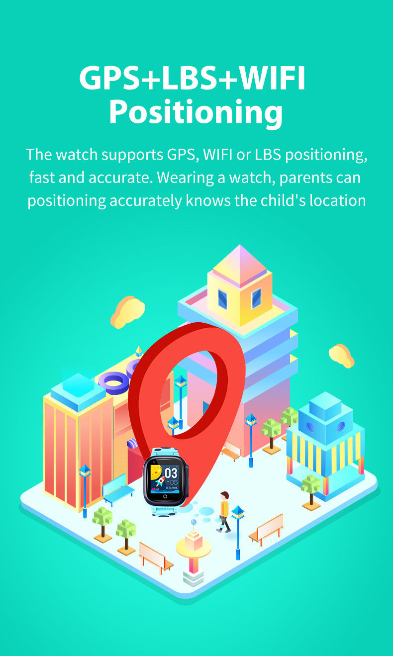 Our Kids Smart Watch is designed to provide peace of mind for parents and fun for children. With built-in GPS tracking and 4G connectivity, monitor your child’s location and stay connected through voice and messages. The touchscreen display and intuitive controls make it easy for children to use. Features such as a camera and step counter offer entertainment and promote activity. The silicone strap and waterproof build ensure durability in any environment. Keep your child safe and connected with our high-tech, user-friendly smart watch!