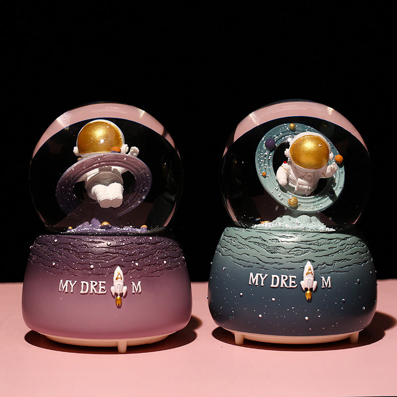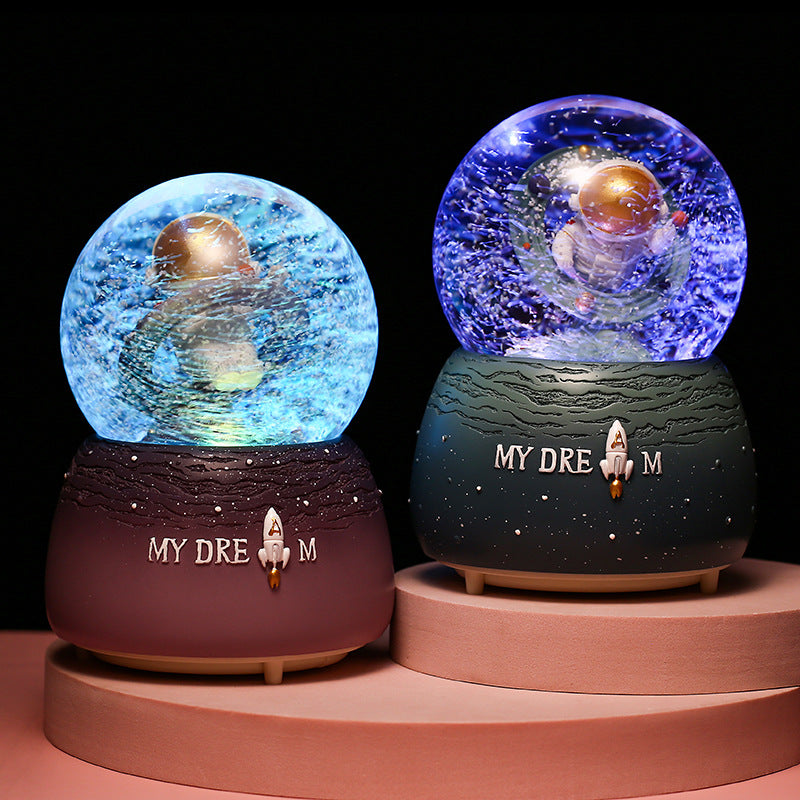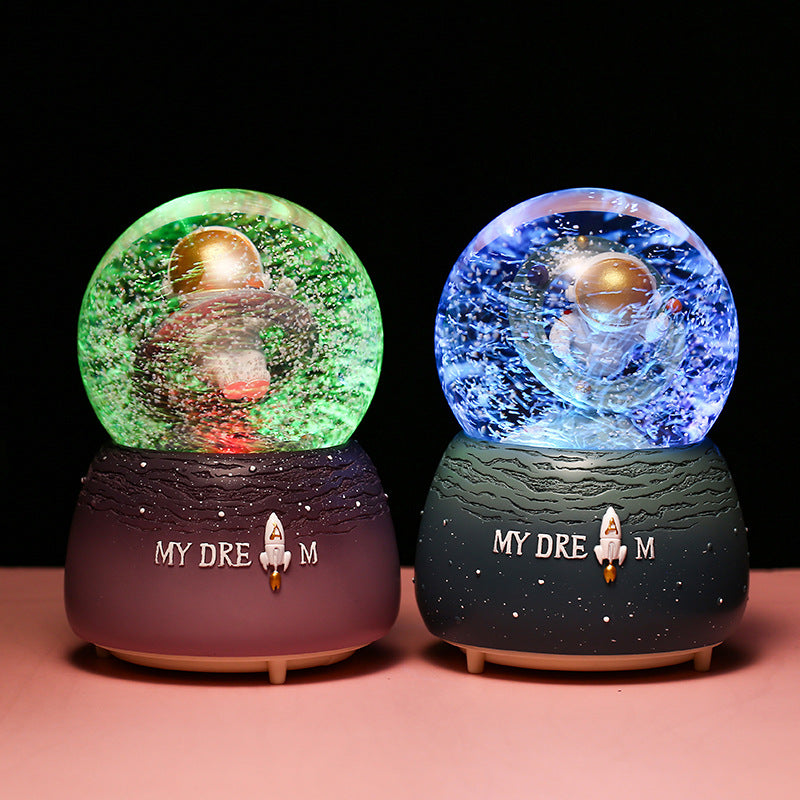 Step into the galaxy with our Astronaut Snow Globe Music Box, a captivating combination of art and music. This space-themed globe features an astronaut floating amidst glittering snow, activated by both manual and automated snow drift options. With its built-in colorful LED lights, it emits a soft, enchanting light, making it a perfect nightlight or decorative piece. It's exquisitely hand-painted, displaying attention to detail that appeals to art enthusiasts and collectors alike. Capable of playing multiple melodies, it adds a peaceful audio retreat to its visual splendor. Whether you're celebrating a birthday, rewarding a milestone, or simply sprucing up your decor, this music box is a versatile gift that transcends the ordinary, making every day a little more magical.