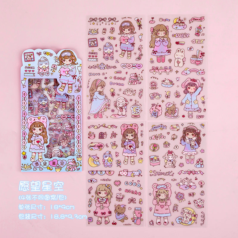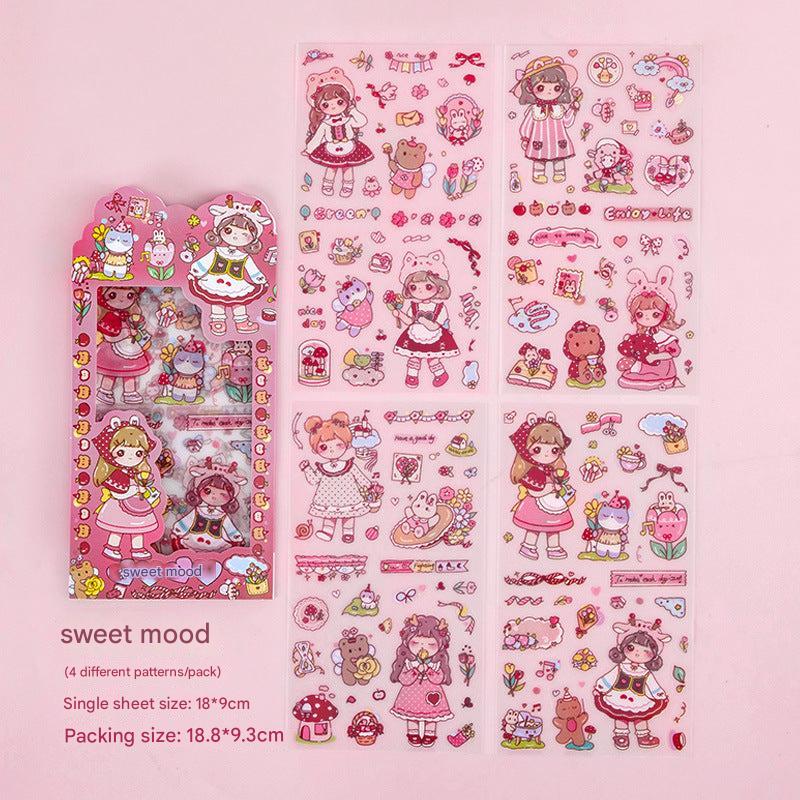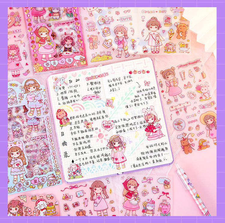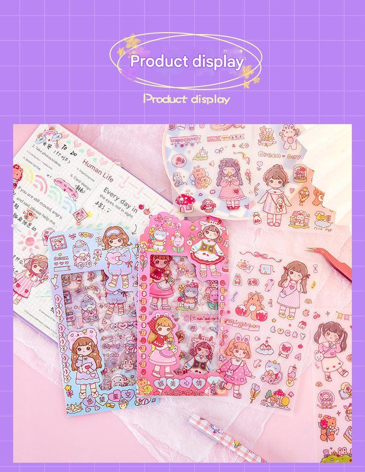 Charming Cartoon Girl Stickers Set – Cute and Expressive DIY Decal Collection for Scrapbooking and Decoration