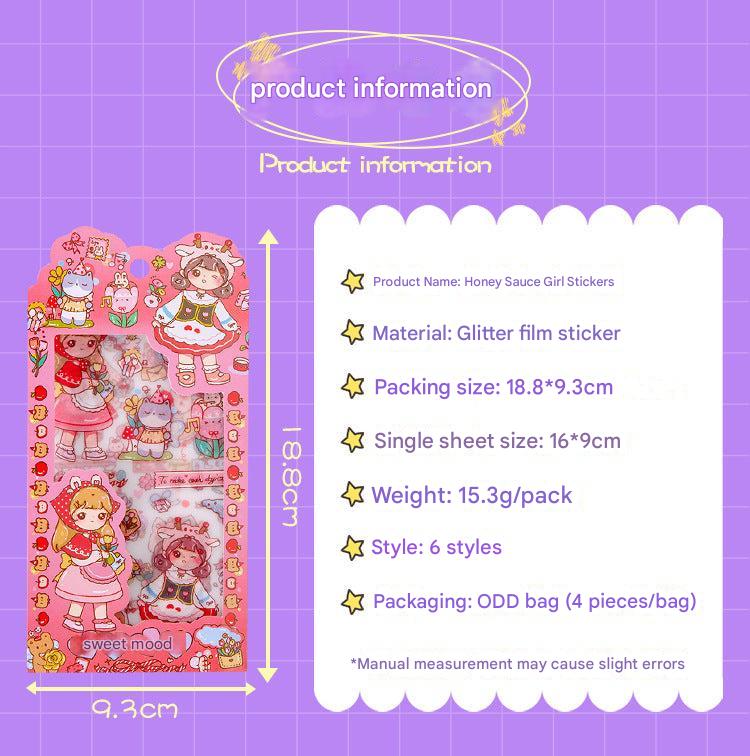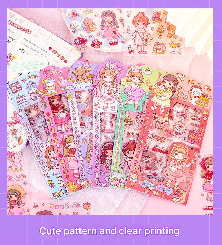 Upgrade your crafting and decorating adventures with our Charming Cartoon Girl Stickers Set, featuring cute and expressive designs perfect for a variety of uses. Whether you're customizing your personal items or looking for a thoughtful gift, these stickers allow for versatile decoration and expression. Each set comes with six unique themes that cater to different moods and settings. Constructed from high-quality PET, the stickers are both durable and vividly colored, ensuring long-lasting aesthetics. They are ideal for scrapbooking, personalizing party decors, or adding a touch of whimsy to any item. These stickers come unbranded and are designed without proprietary logos, ensuring seamless integration into your projects.