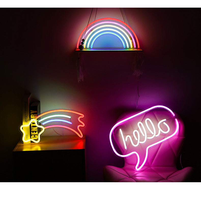 Brighten your home, office, or next event with our collection of stylish LED Neon Signs. Featuring acrylic back panels that ensure durability and safety, these lights come in a vast array of fun and appealing designs. Whether you're setting the mood for a party, adding a creative touch to your living room, or making a statement in your business, these neon signs are up to the task. From romantic hearts to vibrant cocktails and beyond, easily integrate a splash of color and excitement to your décor. Powered conveniently by USB, they offer not only vibrant decor solutions but also energy-efficient lighting to keep your place illuminated without hefty energy bills. Designed with modern living and environmental consciousness in mind, these lights offer both style and sustainability.