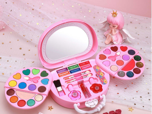 Explore the joy of pretend play with our Cosmetic Playset designed for kids ages 4 to 6, featuring kid-friendly, non-toxic makeup. This set includes vibrant nail polish and an eyeshadow palette, all contained in a cute, portable case. It's an excellent way for your child to enhance their creativity, while also developing crucial skills such as coordination and communication through hands-on play. Perfect as a gift, this makeup kit promises hours of fun and bonding for parents and children alike.