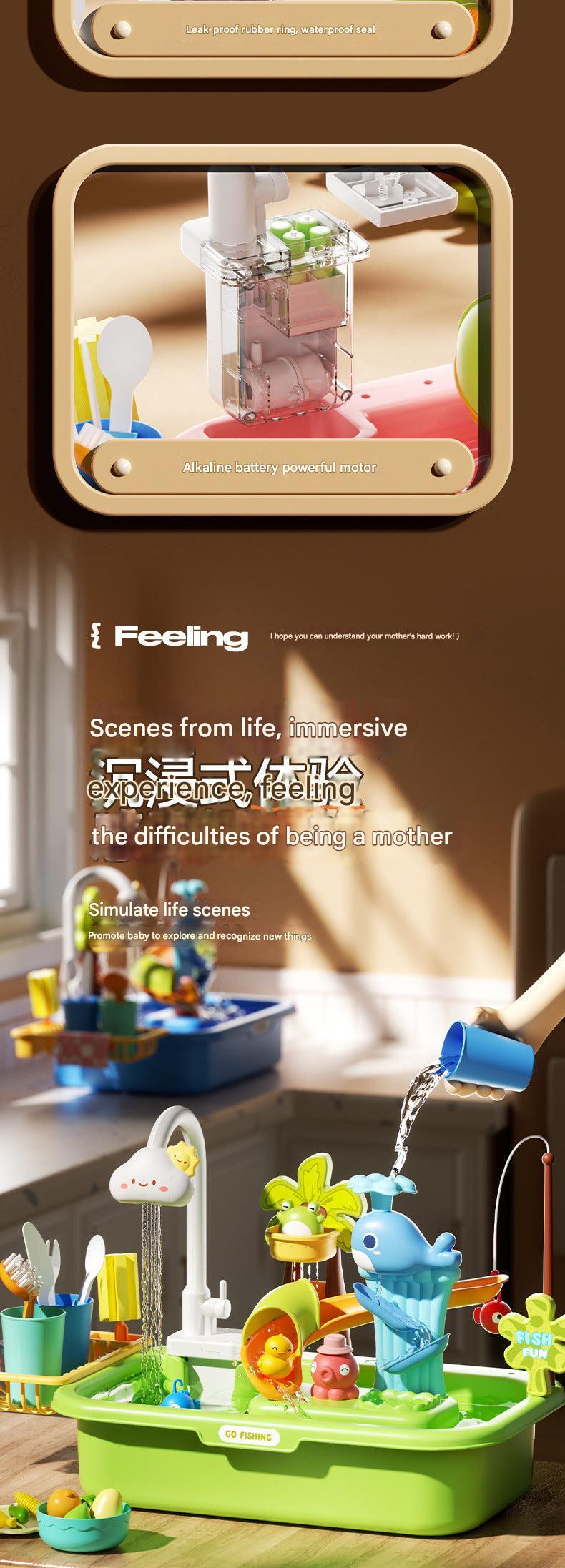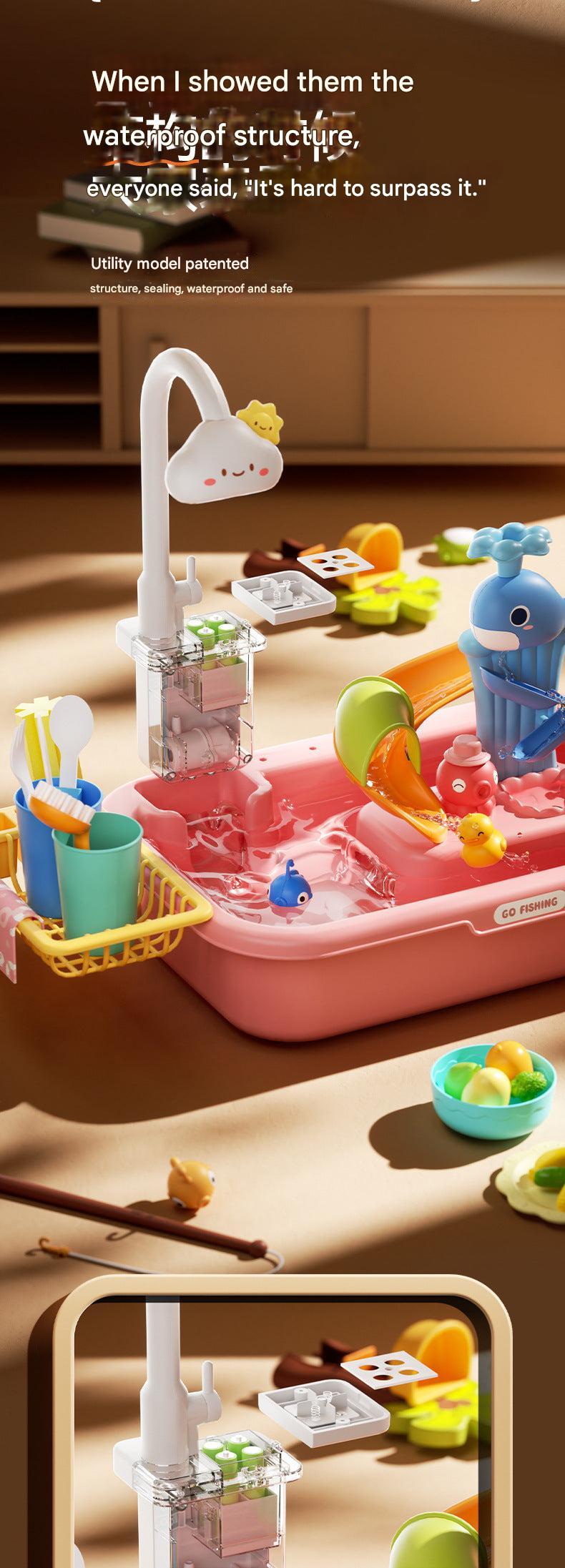 Children's Interactive Play Sink Set with Running Water & Fishing Game, Fun Pretend Play Kitchen Toy for Kids 3-6 Years Old