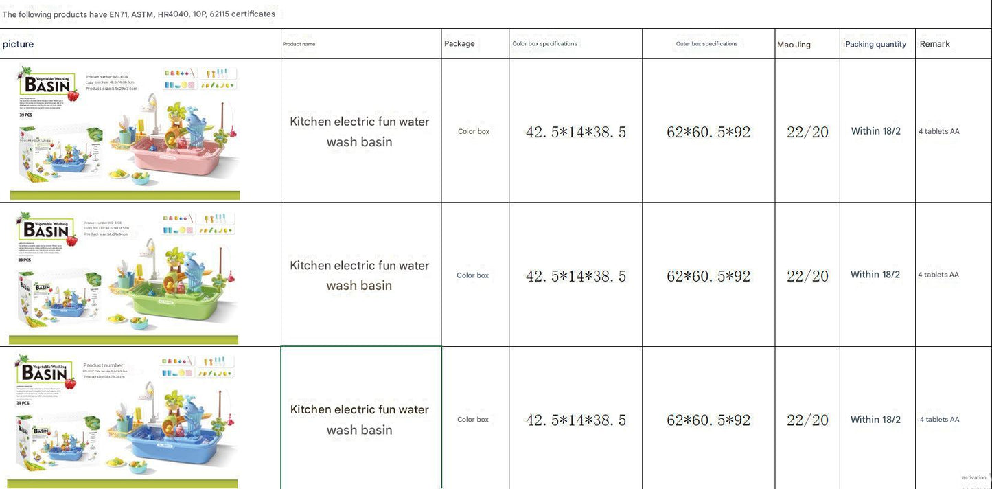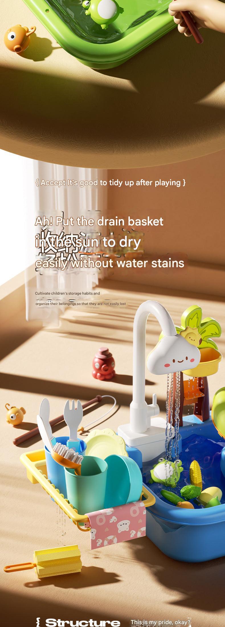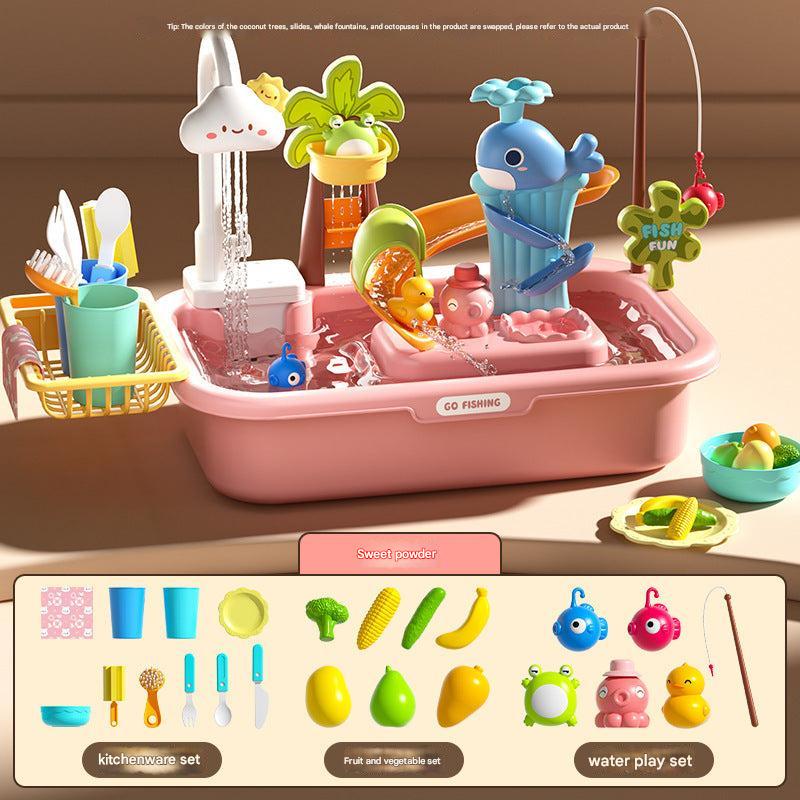 Introduce your child to the joys of cooking and sensory play with our Interactive Play Sink Set. This set includes a battery-powered sink with actual running water, allowing children to dive into a realistic kitchen setting. With 39 pieces including utensils, plates, and pretend food, along with an engaging fishing game, it offers countless hours of fun. Crafted from durable and safe materials, it's designed to last through many play sessions, making it not only fun but also a valuable developmental tool.