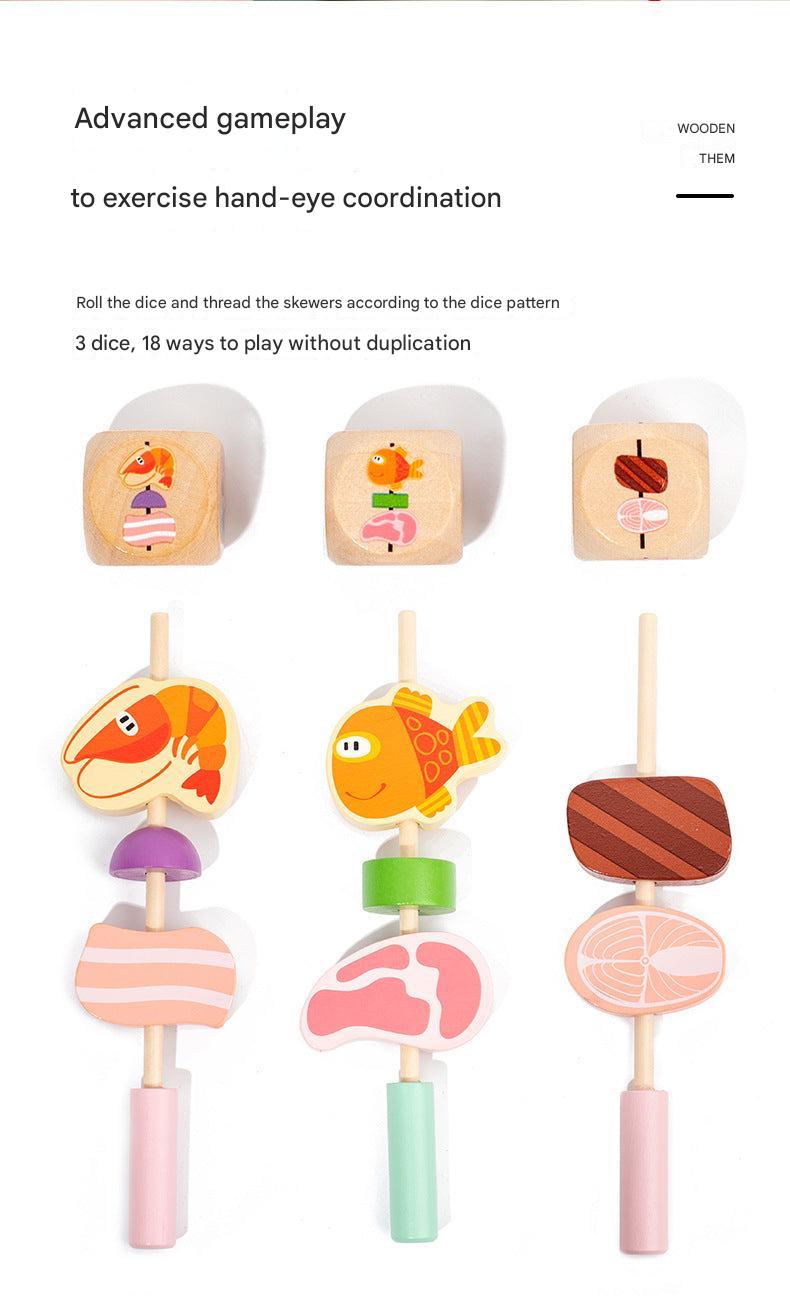 Introduce your child to the fun of cooking with our Children's Wooden Pretend Play BBQ Grill Set. This set enhances family ties by involving everyone in playful, imaginative scenarios where children learn valuable life skills. It's meticulously designed to foster emotional, cognitive, and physical skills, including coordination, visual perception, and interactive communication. Whether indoors or out, this vibrant, sturdy playset forms the perfect foundation for hours of educational play. Appropriate for young children ages 4-6, it comes with various accessories and is available in two attractive color schemes suitable for both boys and girls.