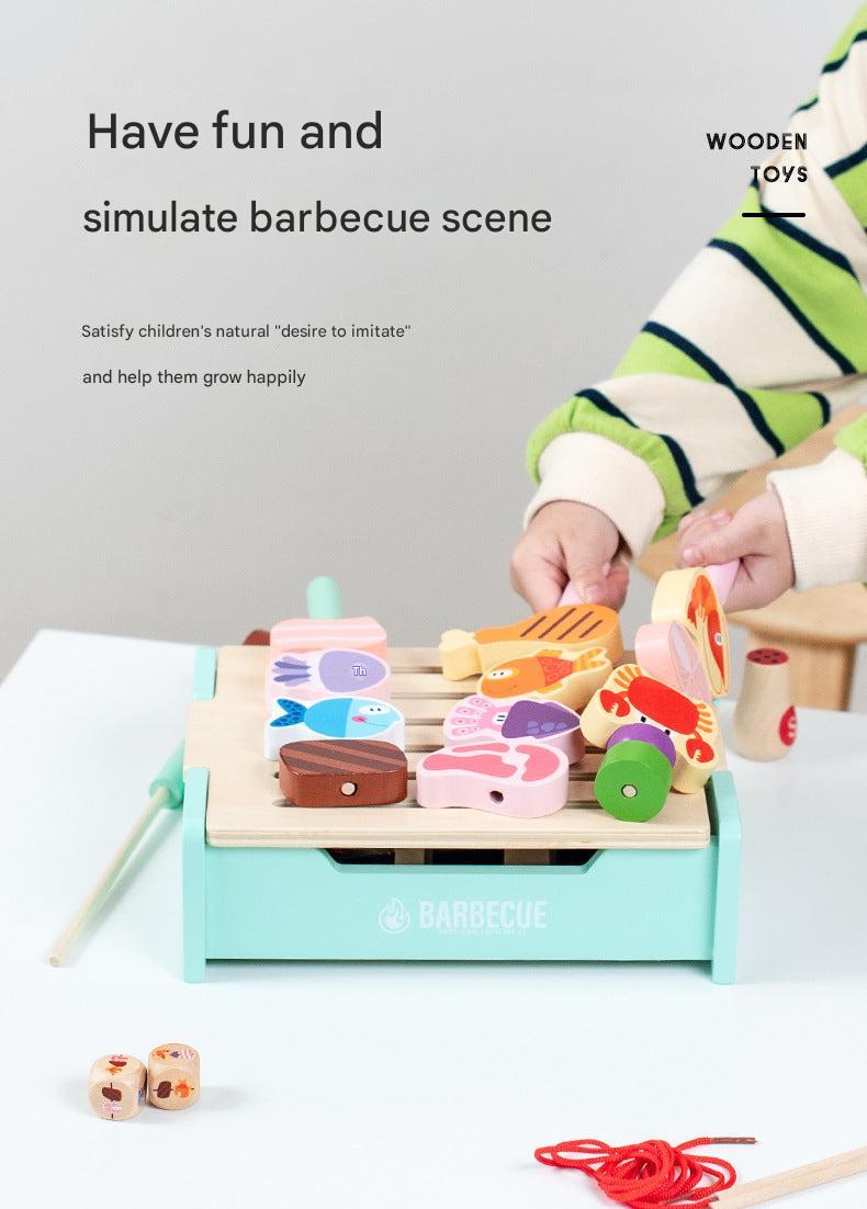 Children's Wooden Pretend Play BBQ Grill Set - Interactive Family Cooking Toys for Boys and Girls, Ages 4-6
