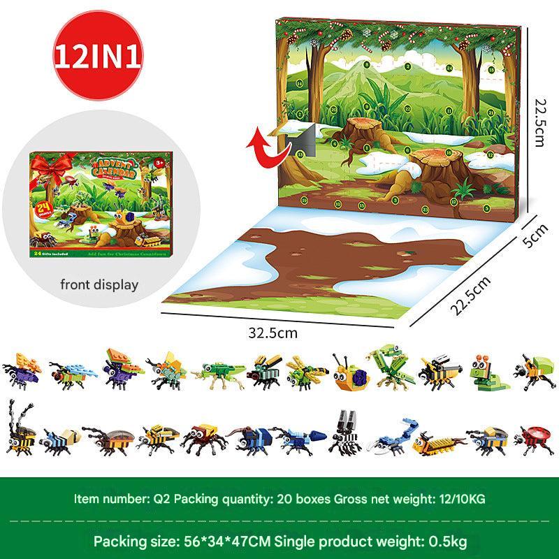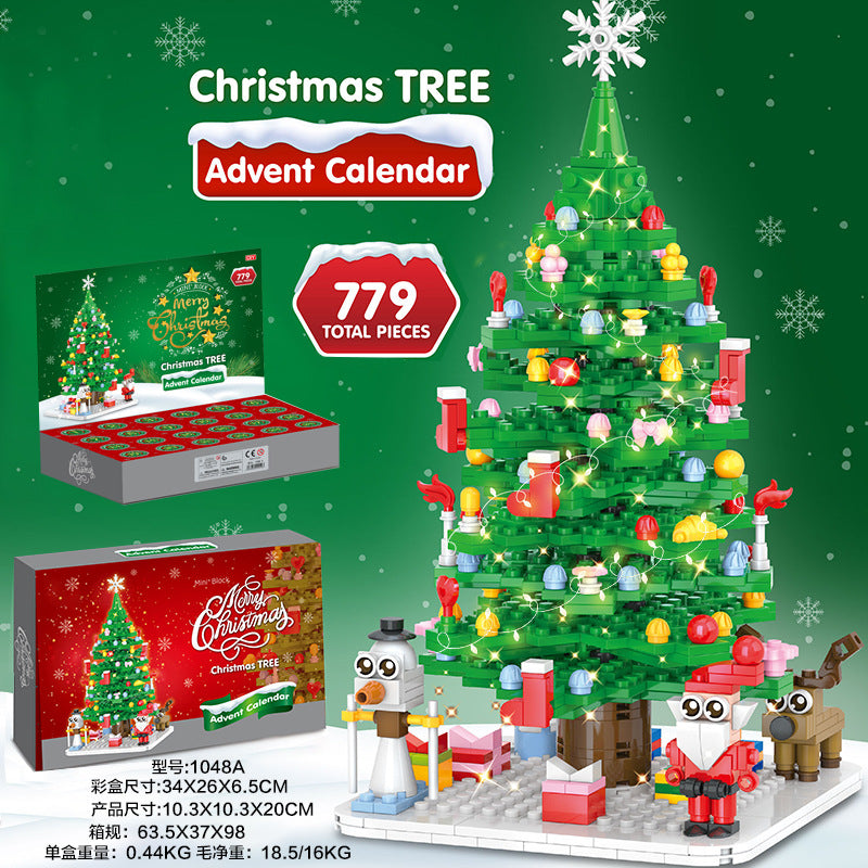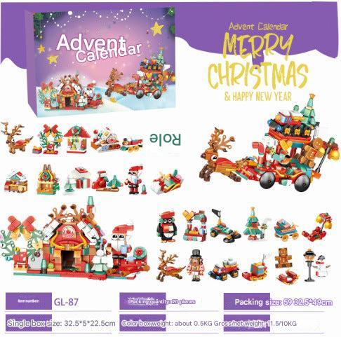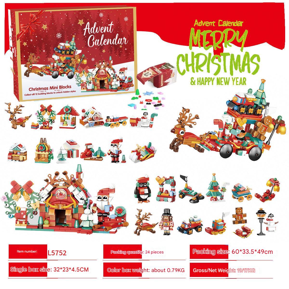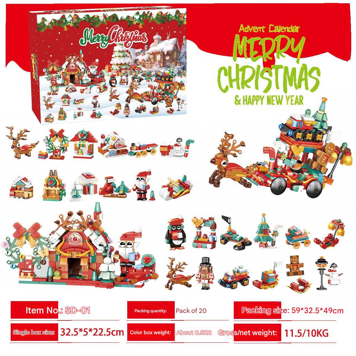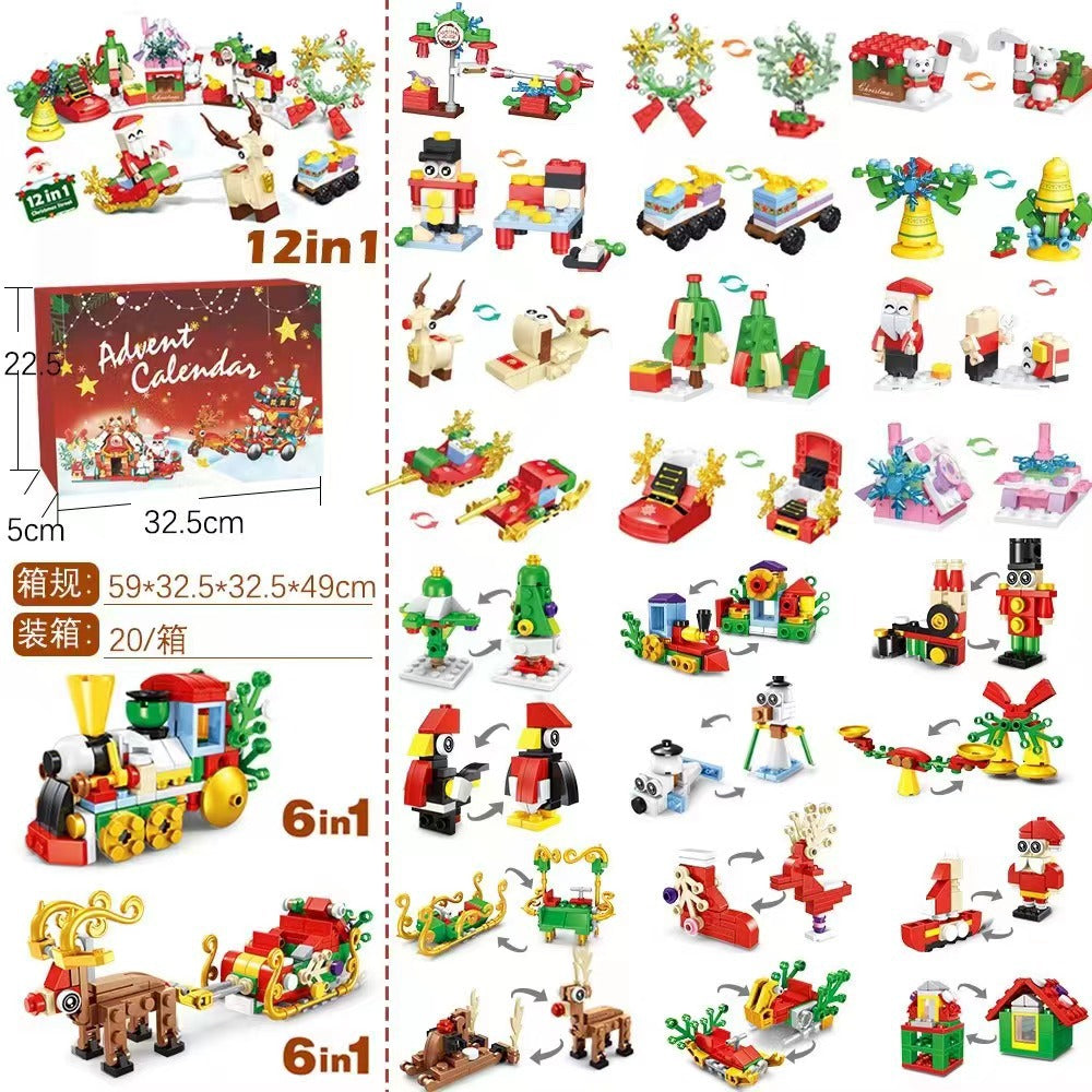 Christmas Countdown Advent Calendar Blind Box Toy Set with Mini Building Blocks and Tabletop Decorations