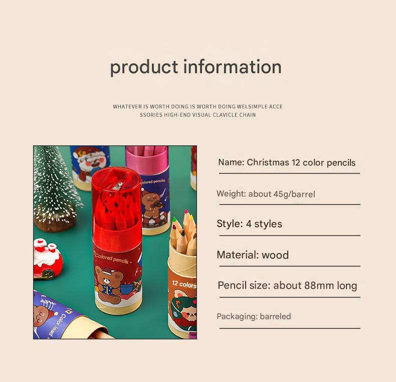 Enrich your child's artistic side this holiday with our Christmas-Themed 12-Color Pencil Set! Each set includes 12 vibrant colors that capture the magic of Christmas, packaged in a handy portable cylinder. Designed for the imaginative child, these pencils are crafted from high-quality wooden material, ensuring durability and comfort even during extensive use. Whether for drawing, coloring, or crafting, these non-toxic pencils are perfectly suited for creative adventures at school or at home. Bring joy and color to your child's art this season with a gift that inspires creativity and celebration!