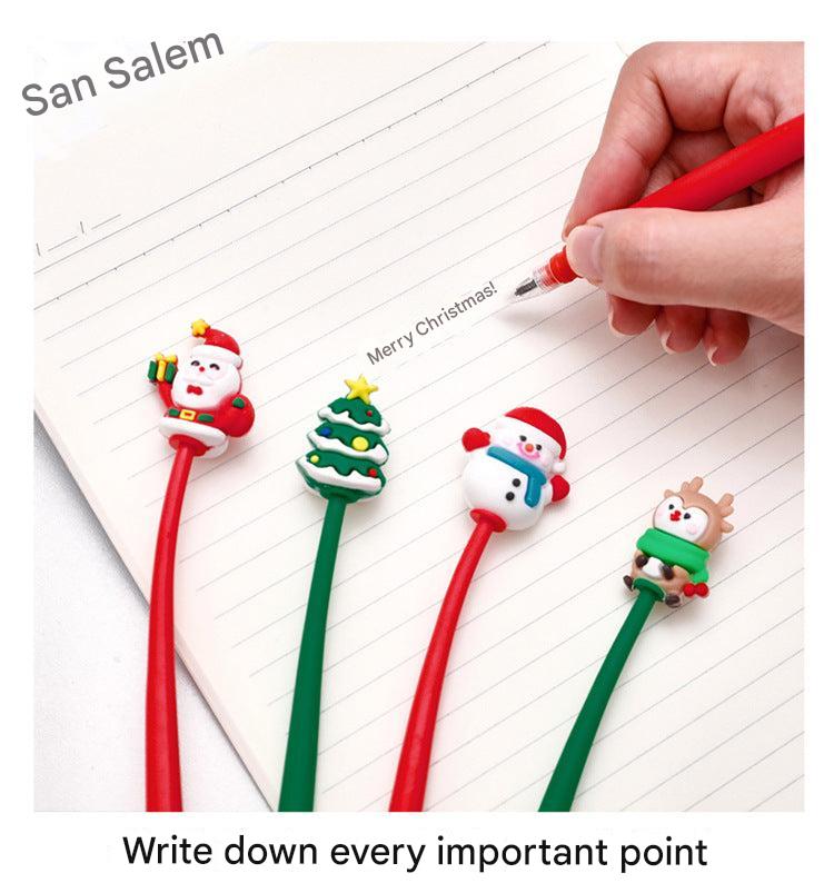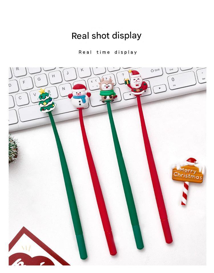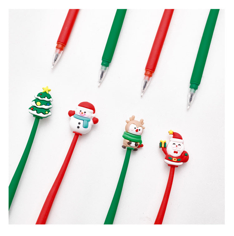Celebrate the festive season with our Christmas Themed Silicone Gel Pens, designed to bring a touch of cheer to your daily tasks. Each pen showcases a different Christmas icon, including Santa Claus, a friendly Snowman, a charming Reindeer, and a festive Christmas Tree, adding a bit of fun to your writing and note-taking. Crafted with a fine 0.38mm stainless steel nib, these pens deliver a smooth and precise writing experience. The silicone gel pen body ensures a comfortable grip and enhances durability, making them suitable for extended writing sessions. These lightweight pens are perfect for students, making them an excellent choice for holiday gifts or personal use. Add a dash of holiday spirit to your stationery collection with these delightful gel pens!