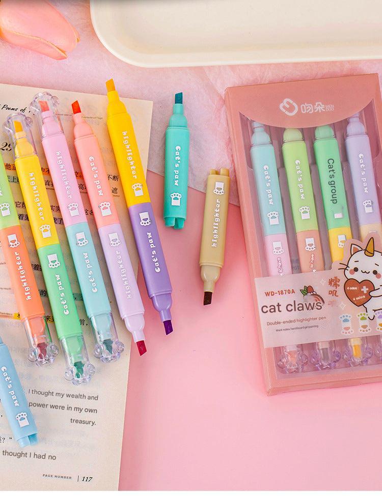Colorful Cartoon Cat Paw Dual Tip Highlighter Pens for Students, Art and Journaling