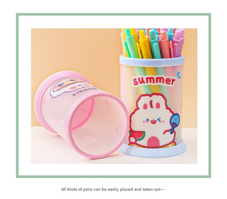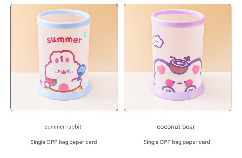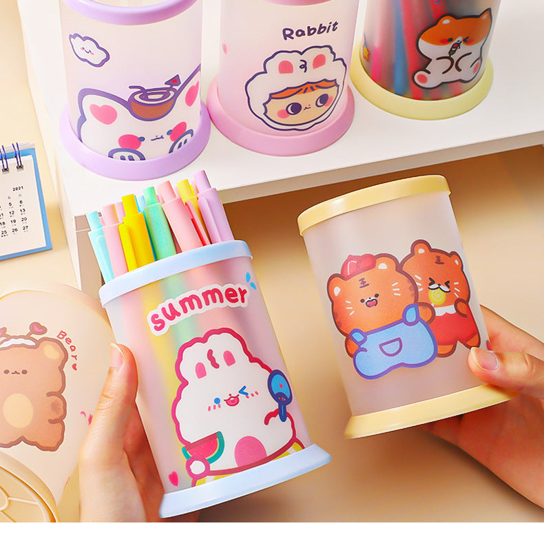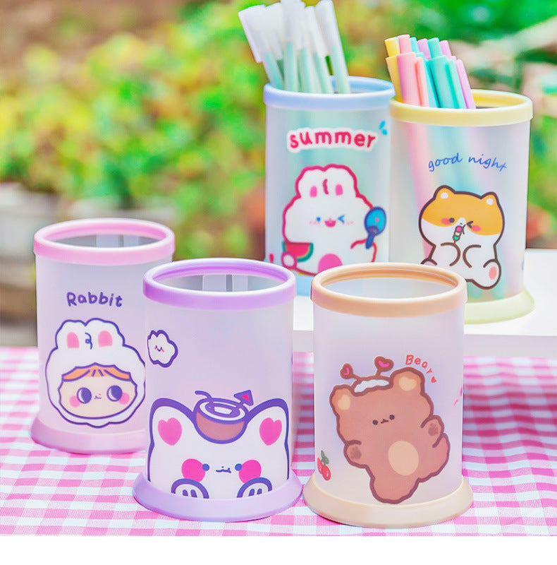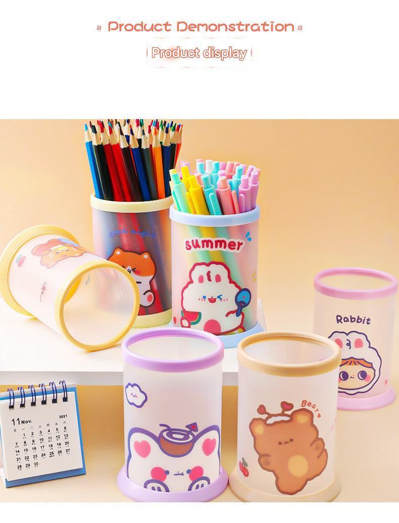 Creative Cartoon Round Folding Pen Holder - Cute, Portable Desk Organizer for Office and School Supplies