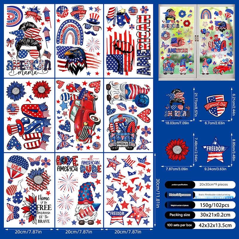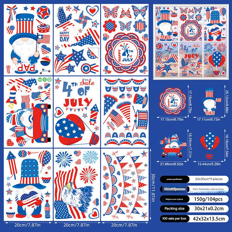 Celebrate Independence Day with our unique gnome decorations, designed to infuse your space with patriotism and cheer. These high-quality static cling stickers allow for easy application and removal, making them a hassle-free option for decoration. Whether you are looking to adorn your windows, doors, or even party supplies, these gnome stickers are the perfect choice. Their bright colors and playful designs are bound to catch the eye and spread joy during your festive celebrations. Adding these gnome decorations to your decor is a fantastic way to enliven your Fourth of July party and make it memorable for everyone involved!