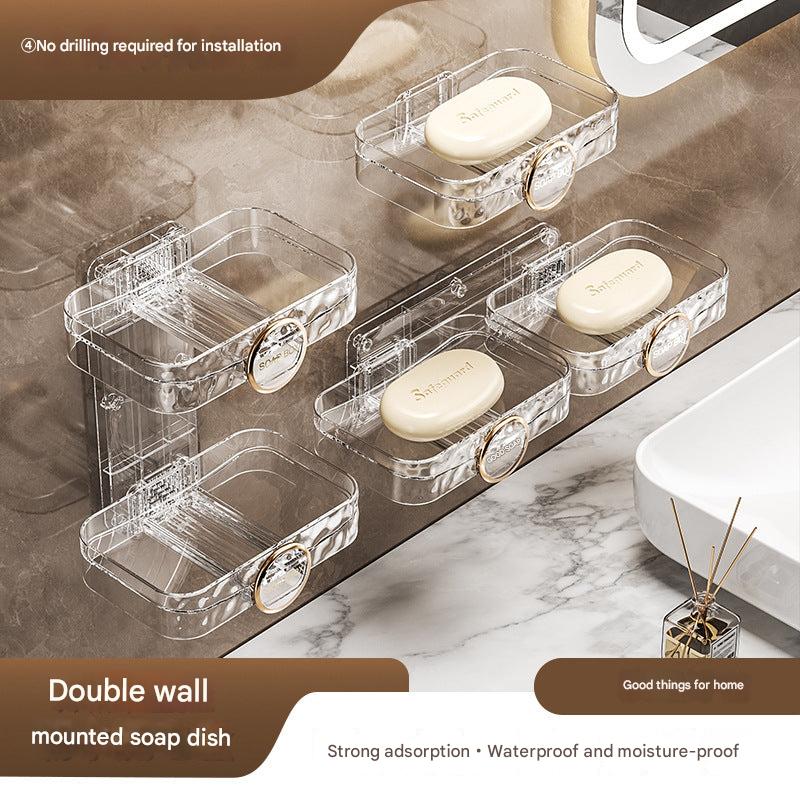 Creative Wall-Mounted Soap Holder with Drainage - No Drilling Required, Double-Layer Shelf for Bathroom and Shower