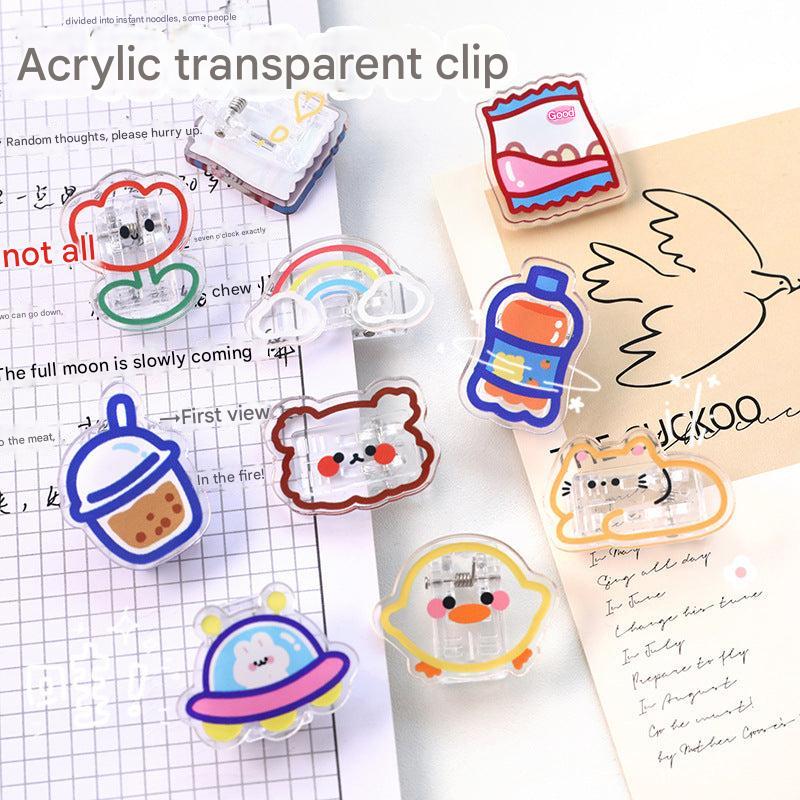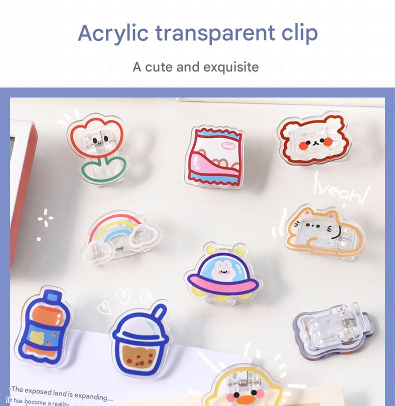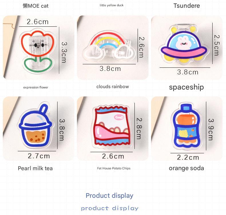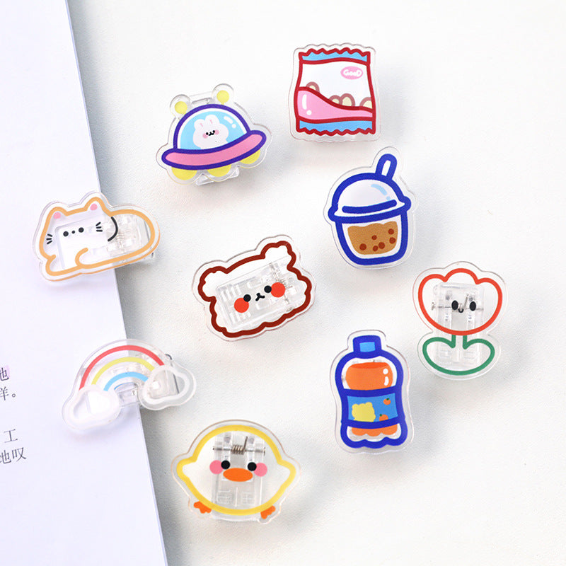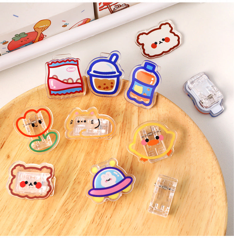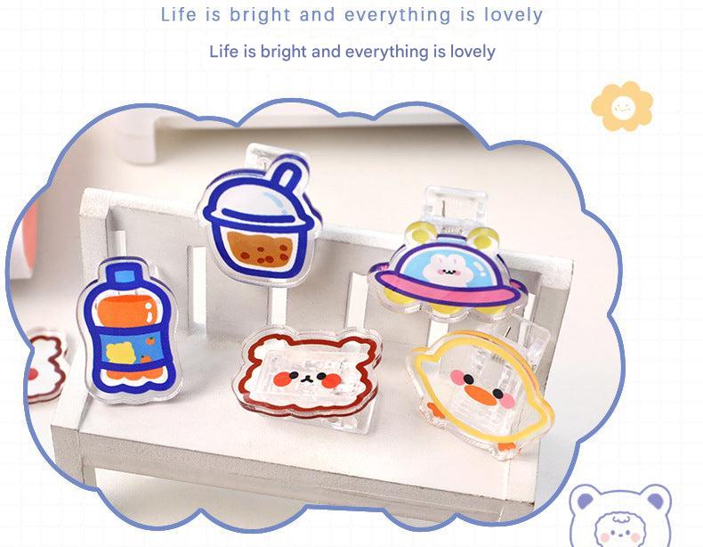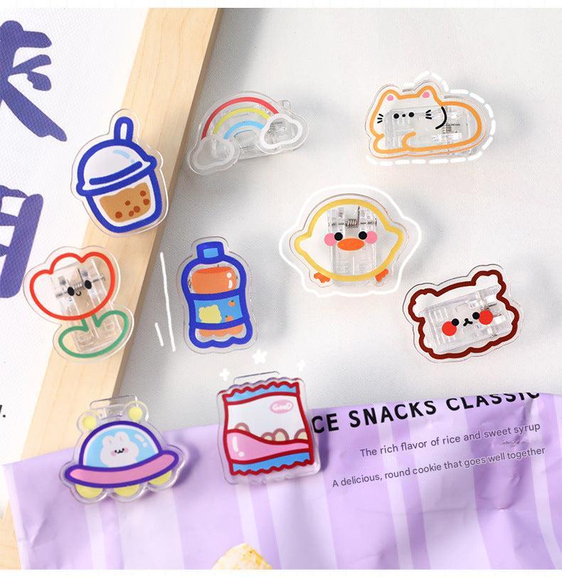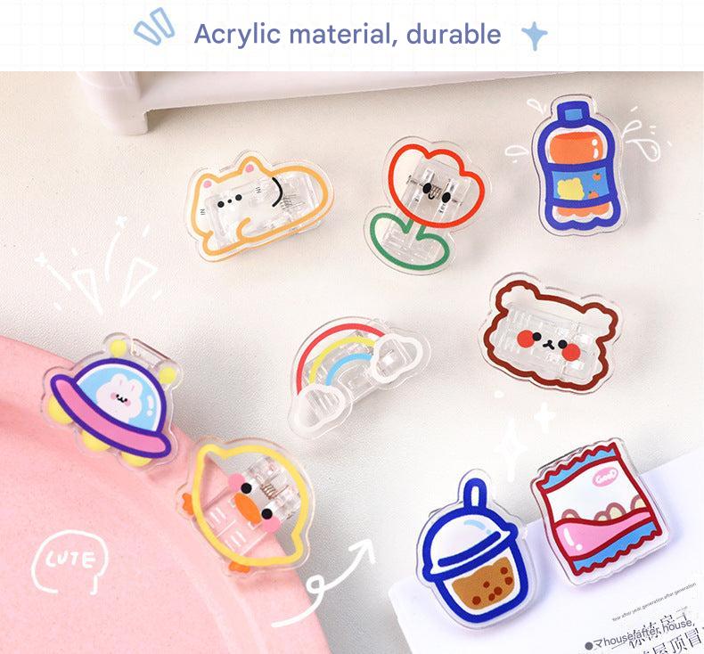 Cute Acrylic Clips Set for Sealing Snacks and Paper Organizing, Variety of Fun Designs, Perfect for Students and Home Use