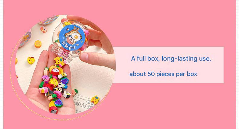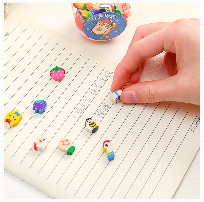 These Cute Animal & Fruit Themed Mini Erasers are not just adorable but practical. Encased in a decorative plastic bottle, these erasers come in various lively shapes of animals and fruits, making them a delightful addition to any student's school supplies. Ideal for young learners, they serve not only as erasers but also help in identifying different animals and fruits, adding an educational twist to everyday schoolwork. These erasers are made of non-toxic materials, making them safe for children to use. They are a perfect gift for school openings, birthdays or simply for adding a fun element to your child's stationery collection.