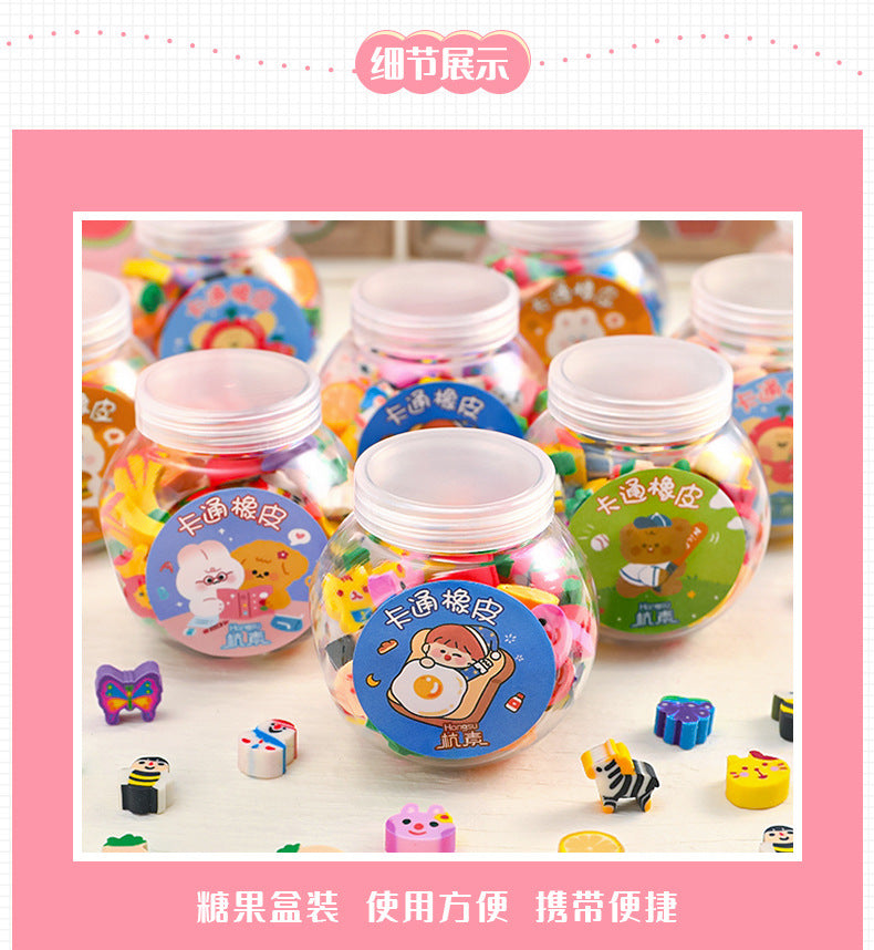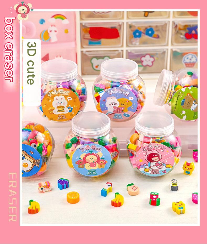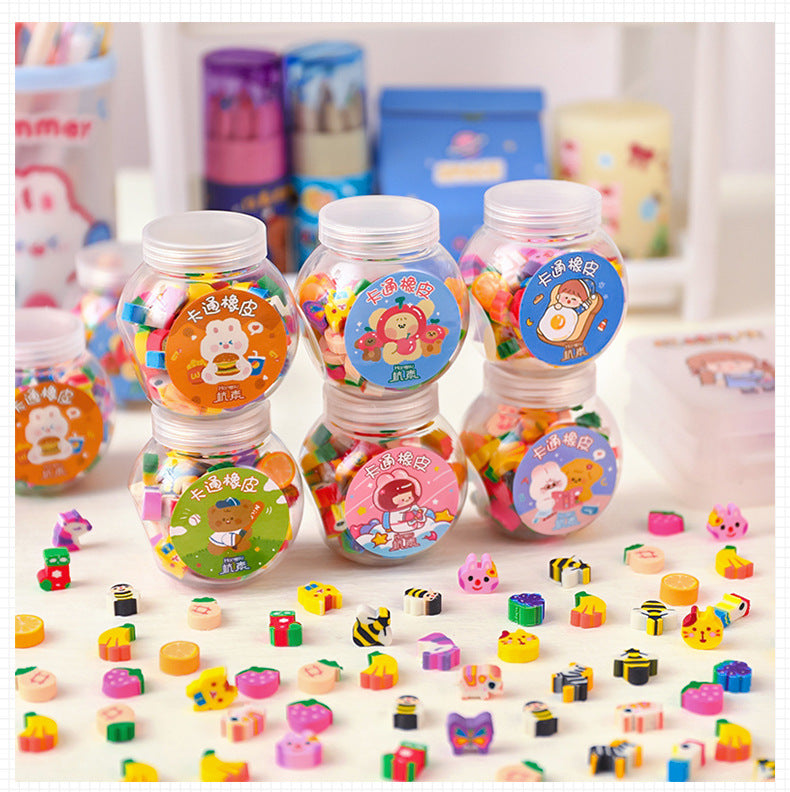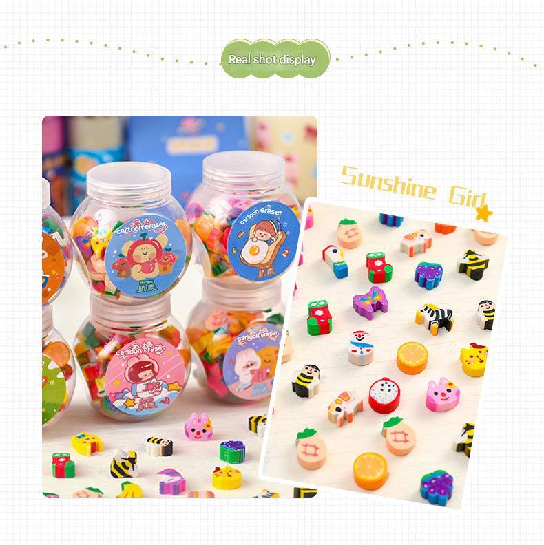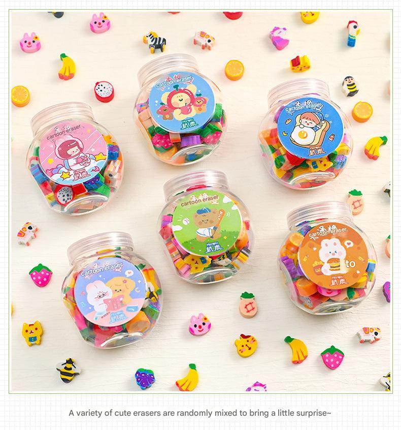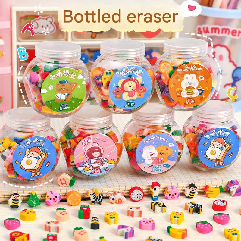Cute Animal & Fruit Themed Mini Erasers in Decorative Bottle for Kids, Perfect Gift for School Supplies