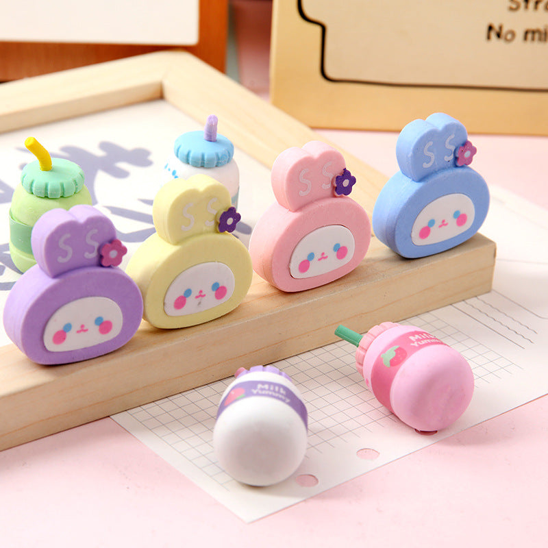 Cute Bear and Rabbit Cartoon Erasers Set, Summer Fun Stationery Essentials for Students, Non-Toxic and Minimal Residue