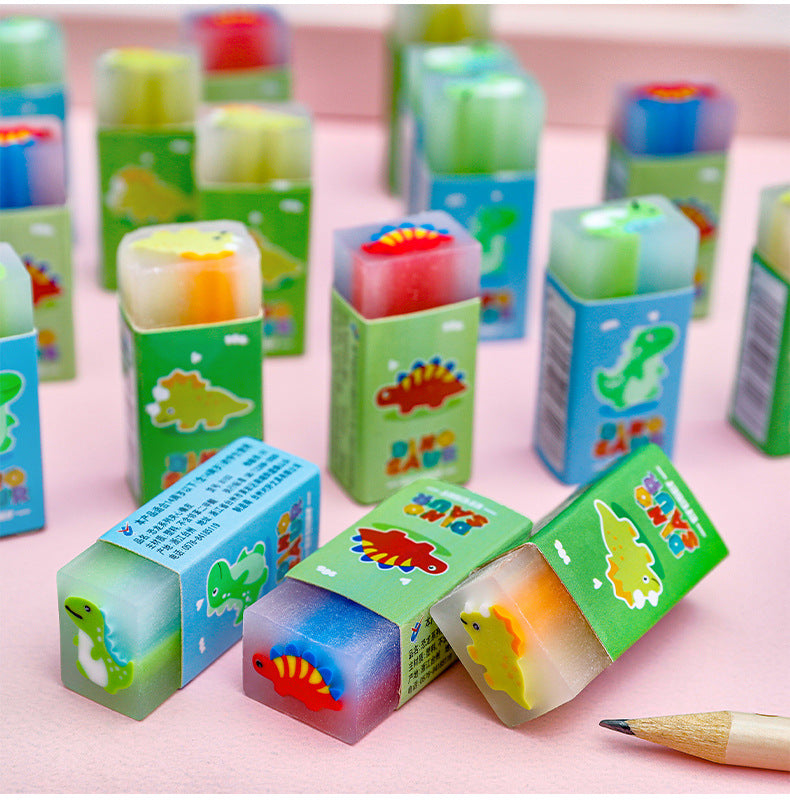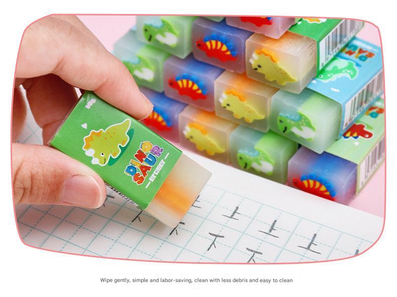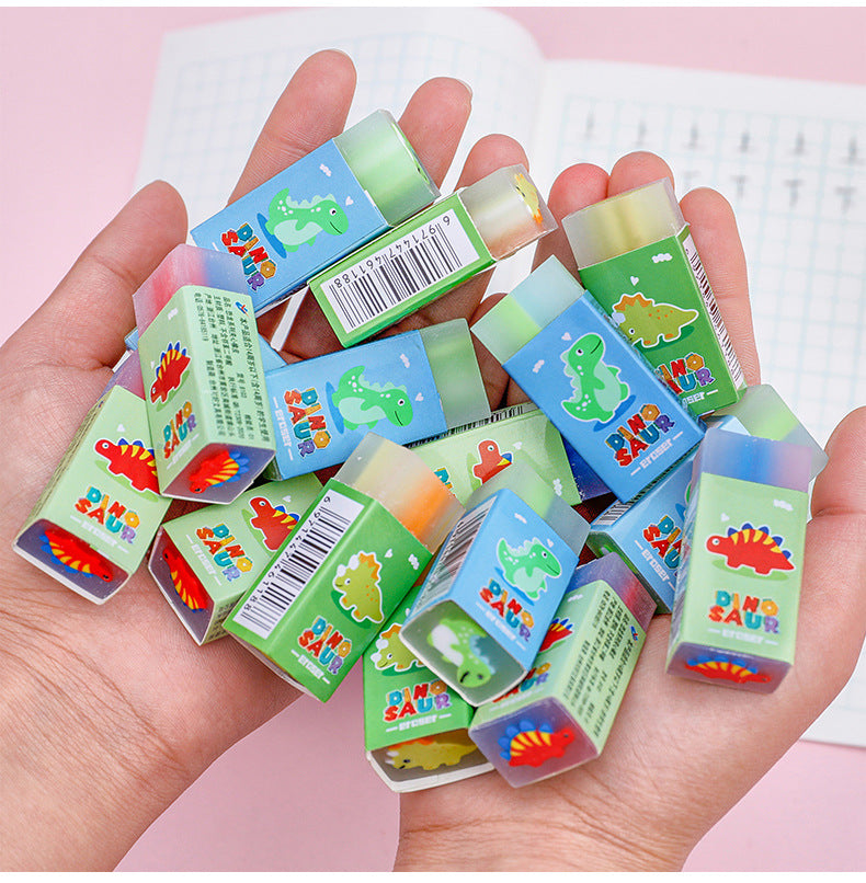 Enhance your child's school supplies with our Cartoon Dinosaur Eraser! Designed for delight and functionality, each eraser features a vibrant dinosaur illustration that captures the hearts of kids and encourages them to keep their study spaces neat. Made from high-quality, non-toxic PVC, these erasers are built to handle the mistakes of any graphite pencil, ensuring clean corrections without damaging the paper. Measuring just 4.6 x 2.1 x 1.5 cm and weighing 17g, these erasers are perfect for on-the-go corrections. Ideal for giving as personal gifts or using as prizes at parties or educational events, these erasers come in a variety of styles to please any young learner or dino lover. Whether for daily use or special occasions, these erasers add a touch of fun and functionality to any pencil case.
