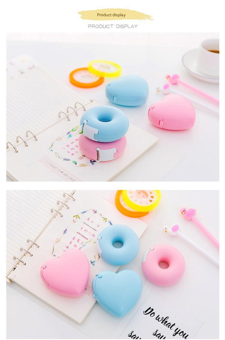 Cute Cartoon Donut-Shaped Tape Dispenser with Cutter, Portable and Lightweight Stationery Accessory