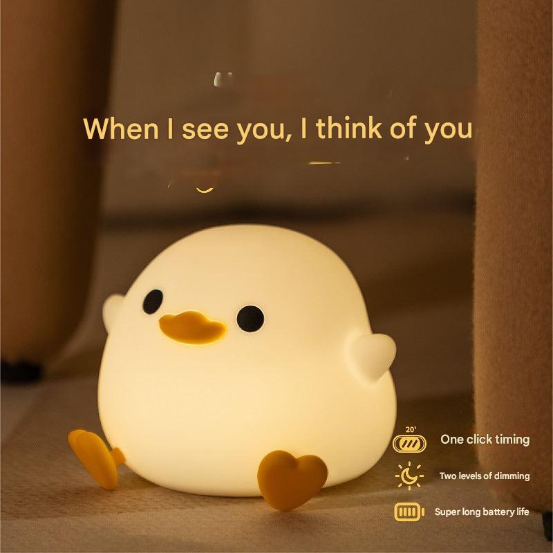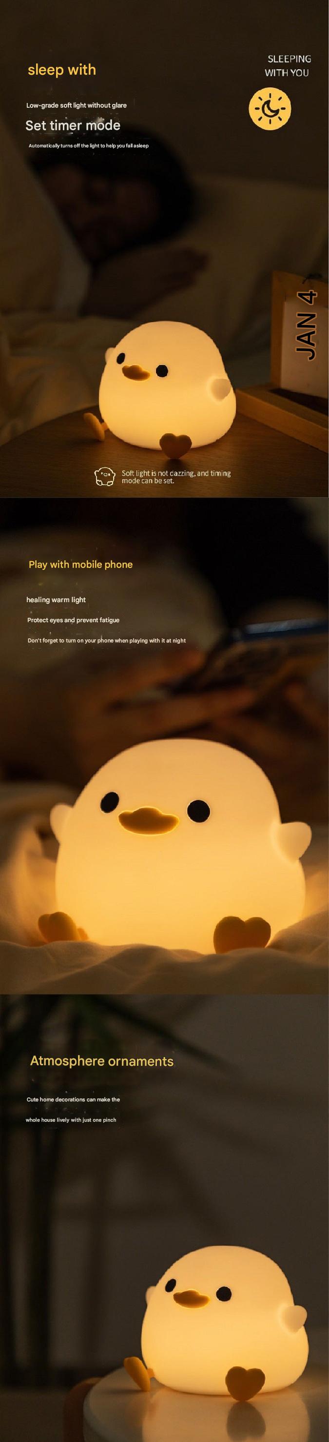Cute Cartoon Duck Silicone Night Light - USB Rechargeable Soft Touch Lamp for Bedroom, Nursery and Dorms