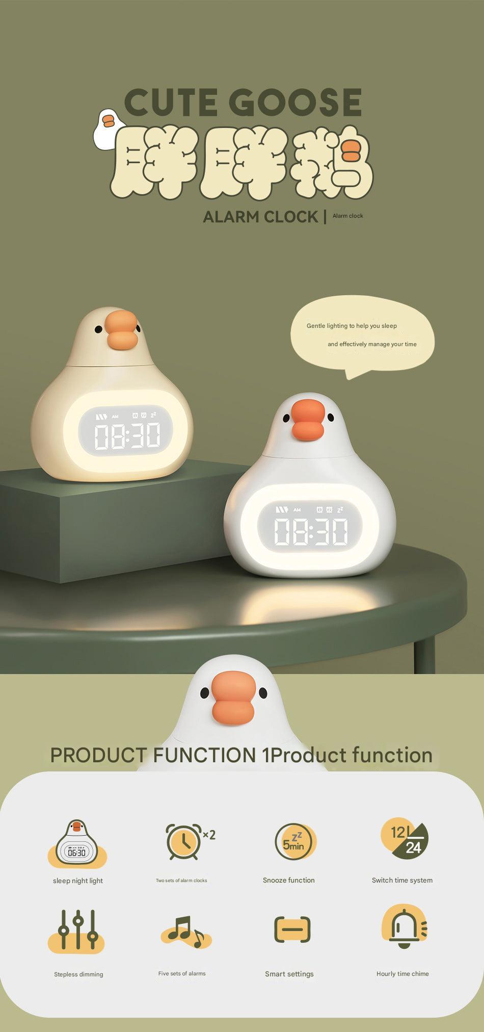 Cute Cartoon LED Alarm Clock with Adjustable Night Light and Digital Display for Kids