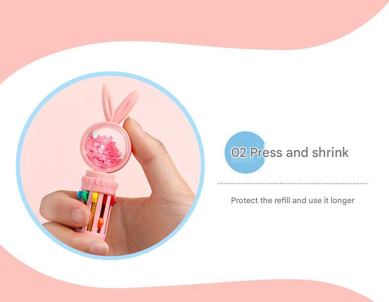 Cute Cartoon Rabbit Multi-Color 10-in-1 Retractable Ballpoint Pen for Students and Office Use, 0.5mm