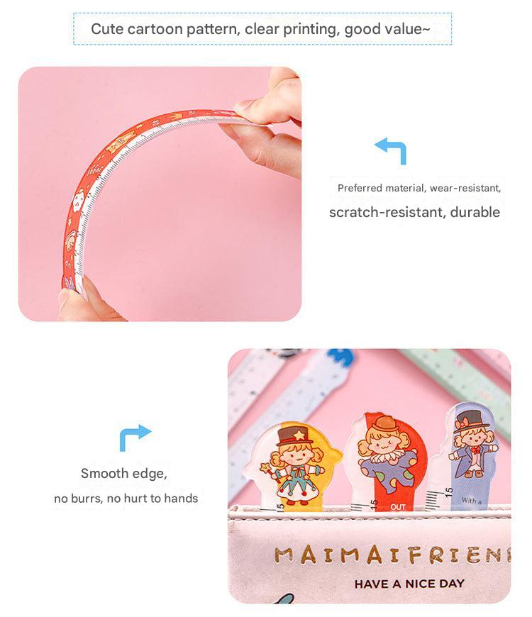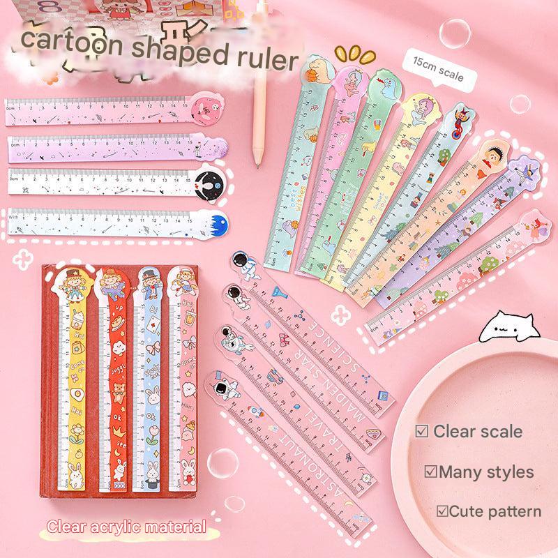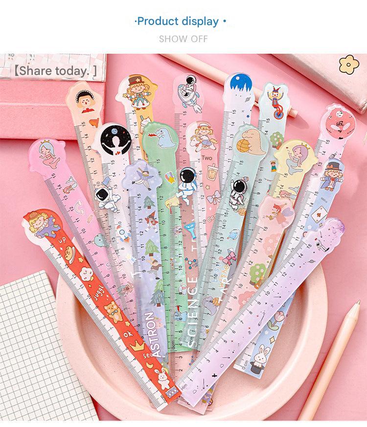 Cute Cartoon-Themed Rulers for Kids and Teens - Colorful 15cm Measuring Tools for School and Drawing
